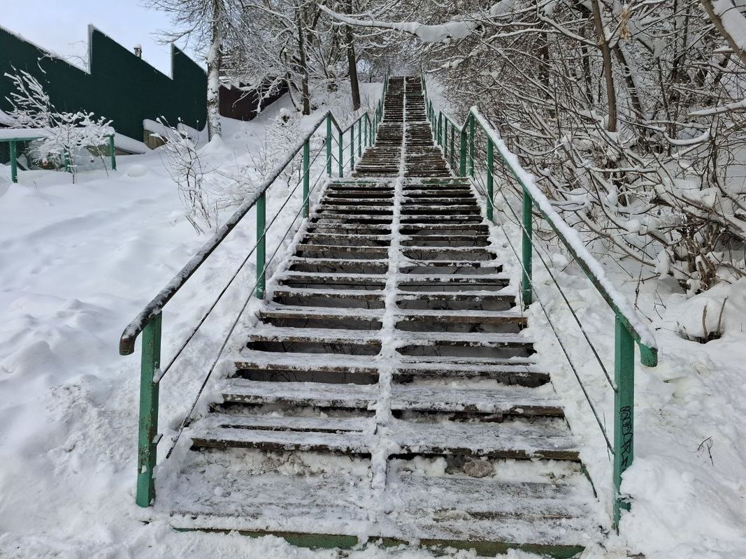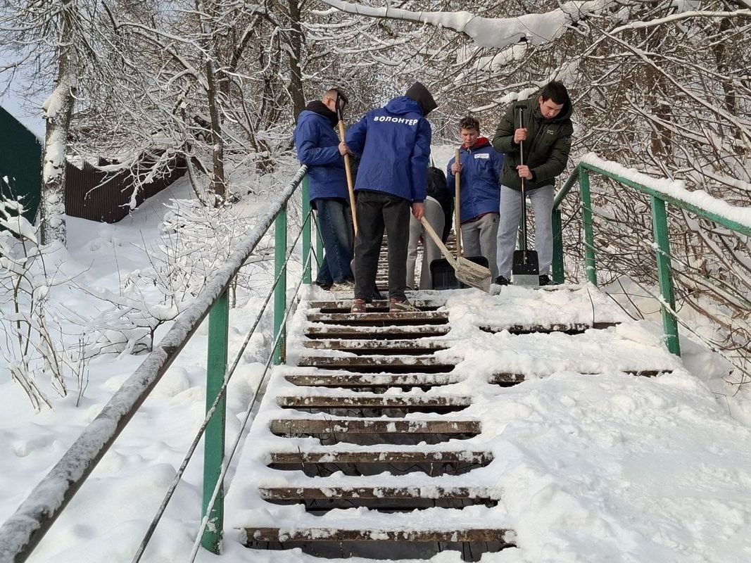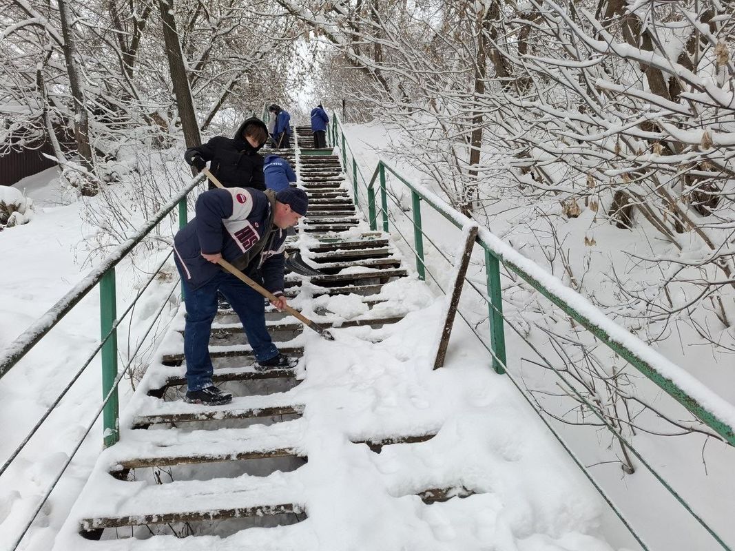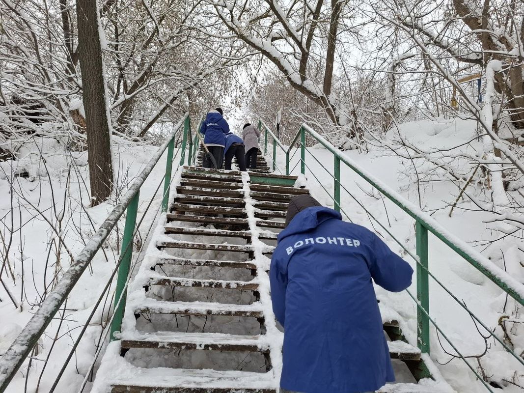 Сегодня волонтеры отрядов "Новое поколение" школы № 1 и "Дело чести" нефтегазового колледжа очистили от снега и льда лестницу, ведущую от центра города к Успенскому оврагу.